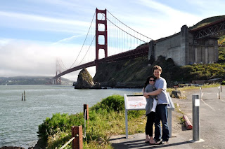 Our flight left @ 6:30 on Saturday morning. We went with our friends Justin and Meredith. Jeff always bring the laptop so that I can watch movies and he can sleep on the flight. We watched The Rock in anticipation of visiting Alcatraz while out in San Francisco. We arrived around lunch time, made a stop @ In and Out Burger for lunch and then headed over to the Golden Gate Bridge.
